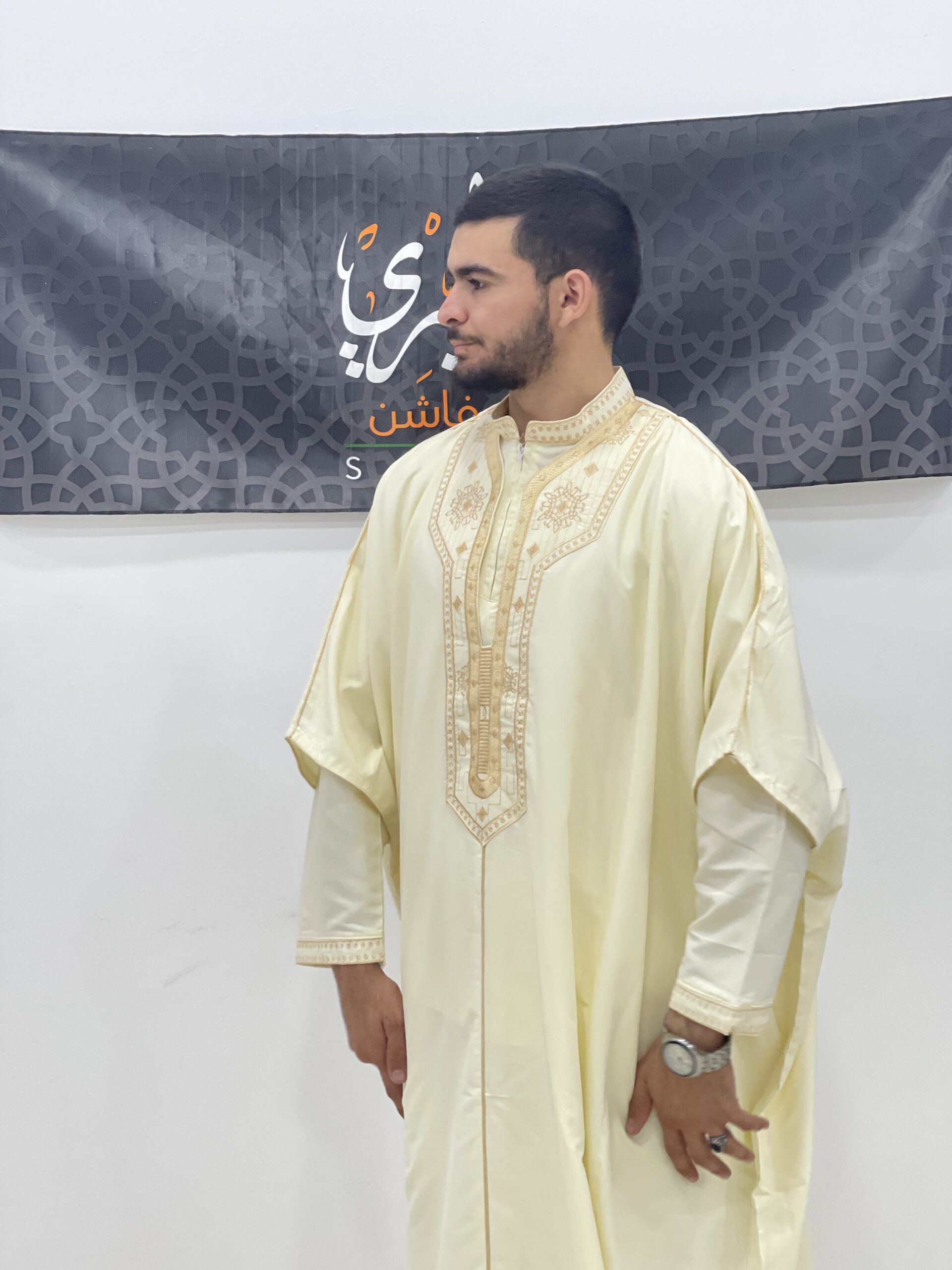 قميص متكون من 3 قطع سروال و قميص و قندورة عربي نوع القماش من النوعية الرفيعة